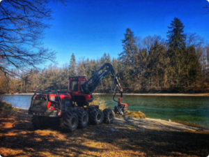 Zangenschlepper zum Rücken, Seilen und Poltern (Lagern) von Rundholz