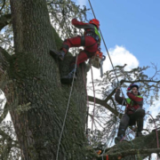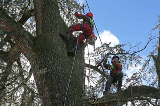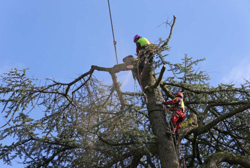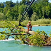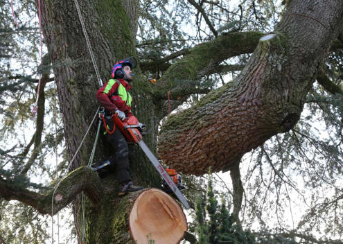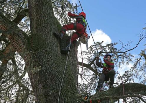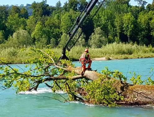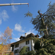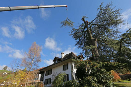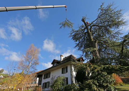 In Nähe von Liegenschaften (Gebäuden), Gärten, Parks oder entlang von Autobahnen und Strassen, ist das Fällen von Bäumen oft mit grossen Gefahren und Schwierigkeiten verbunden.